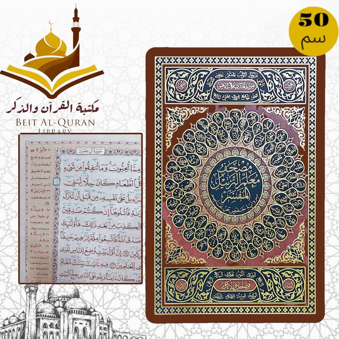مصحف قياس ٢٨ سم تجليد فني كيو ار ٤٥ قارئ ١٠ ترجمة ١٠ تفاسير السعر ٦ دينار