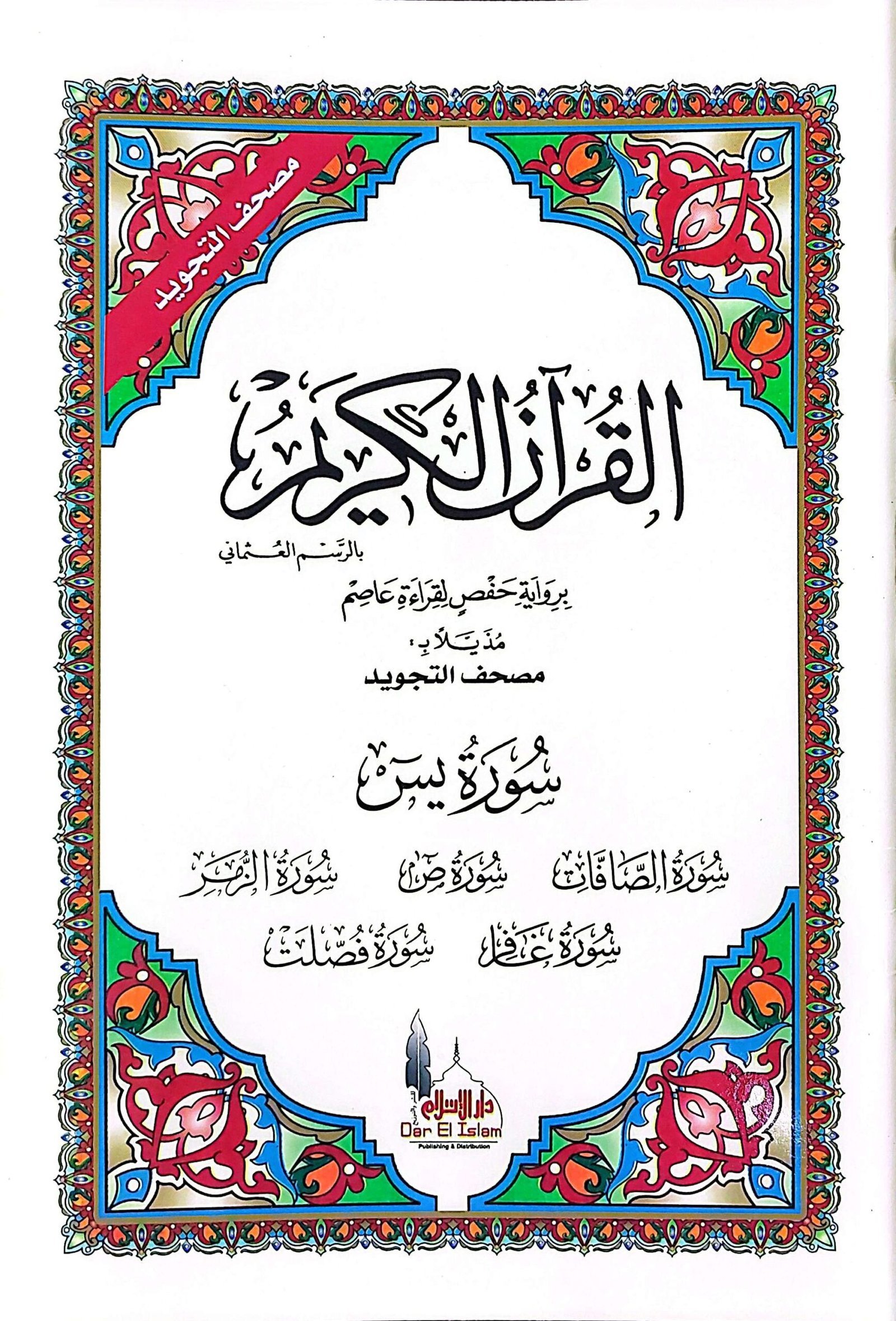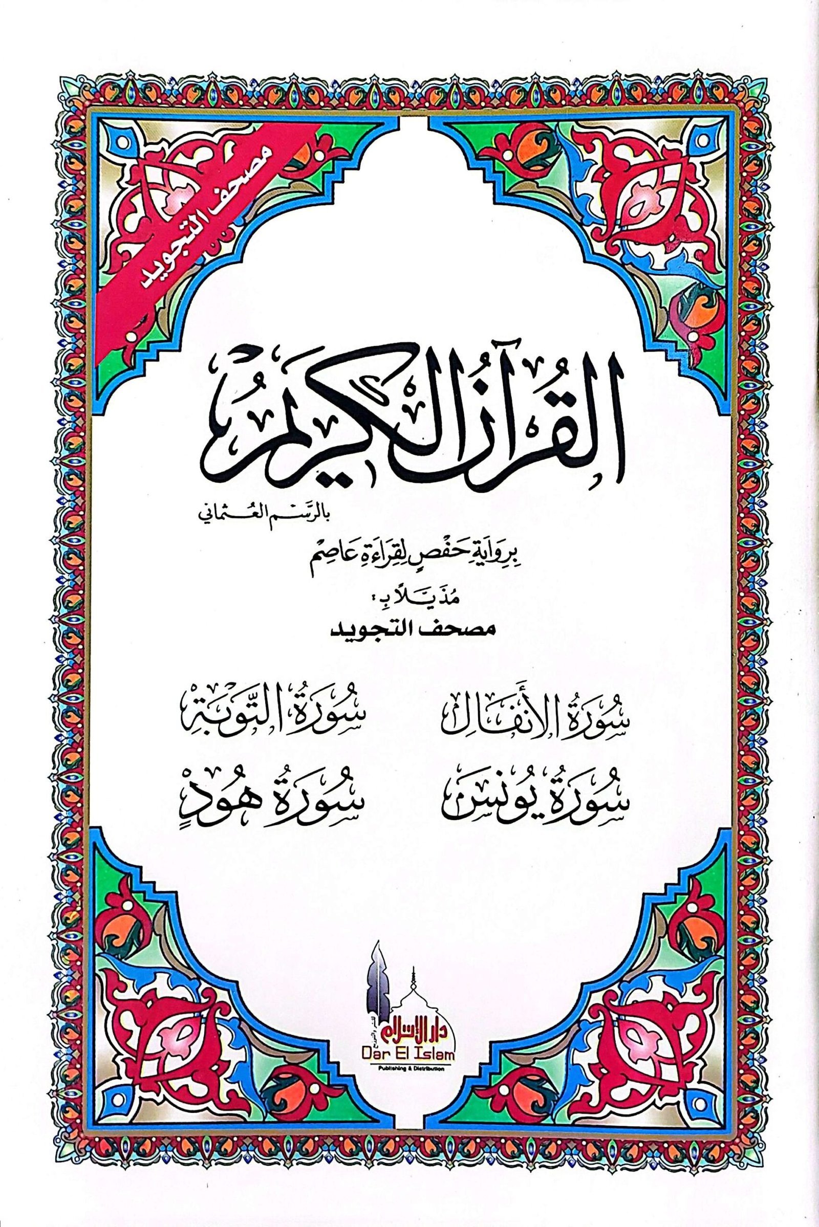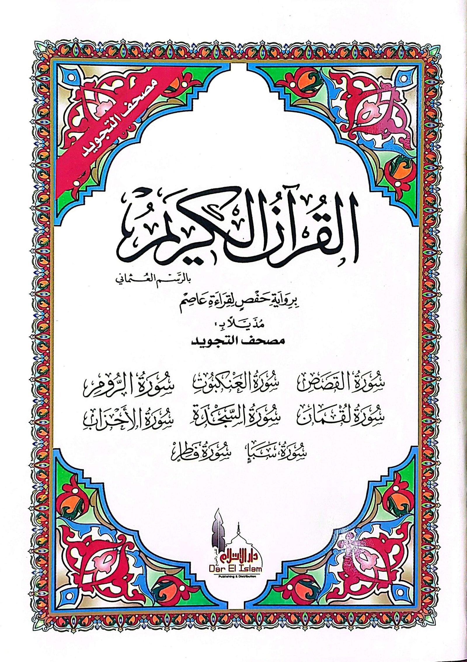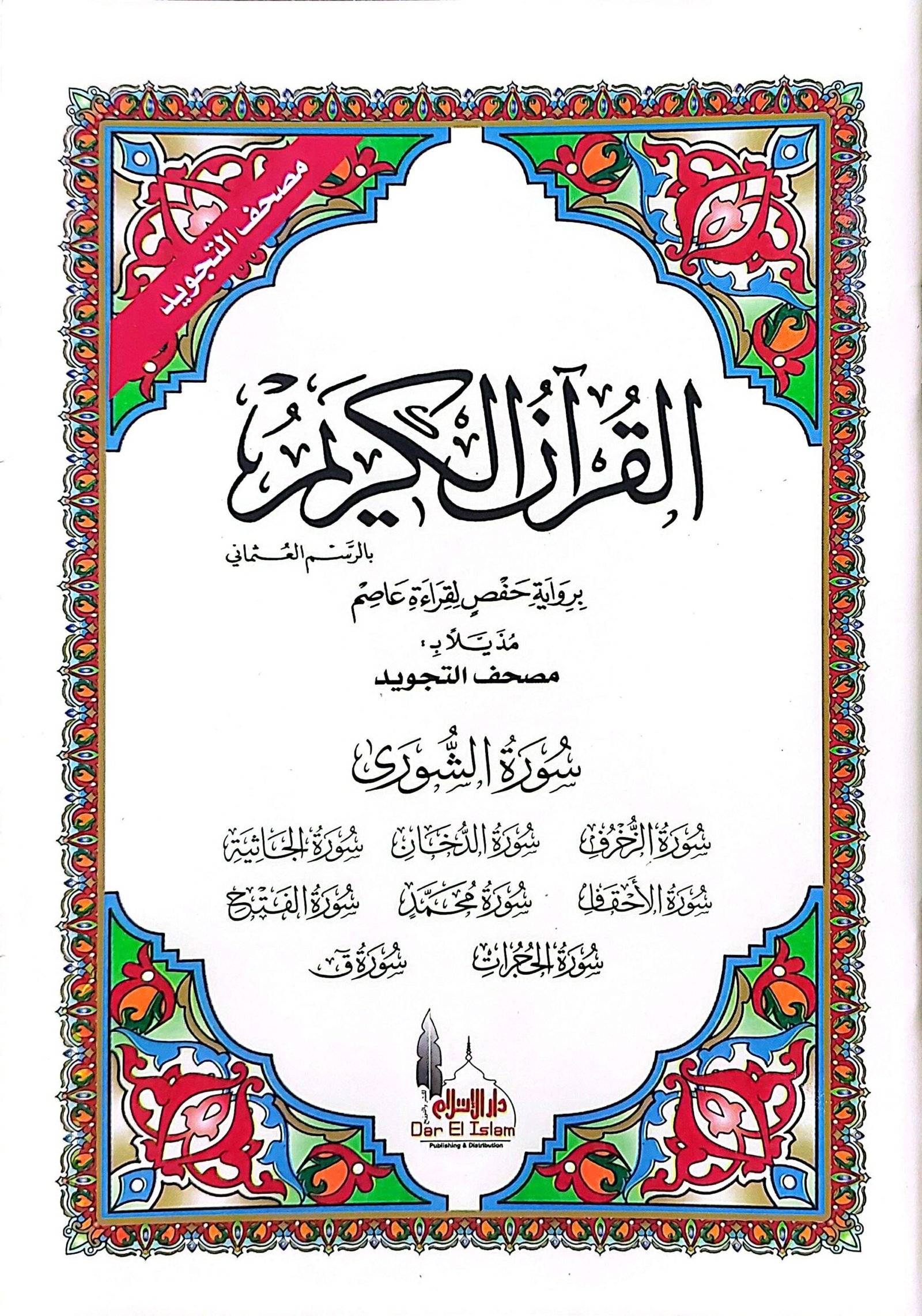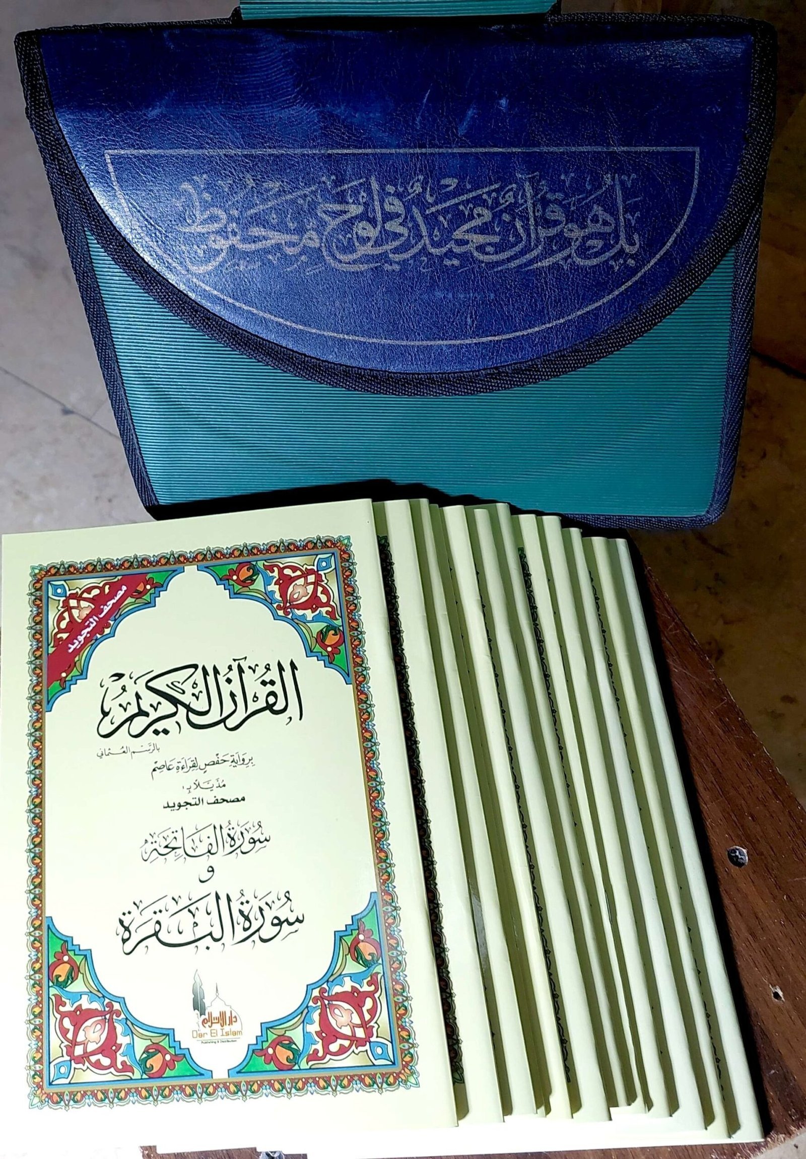 مصحف مجزء تجويد مقسم صور كل كتاب يبدء بسورة وينتهي بسورة قياس ٢٥ سم بدون تفسير بالهامش